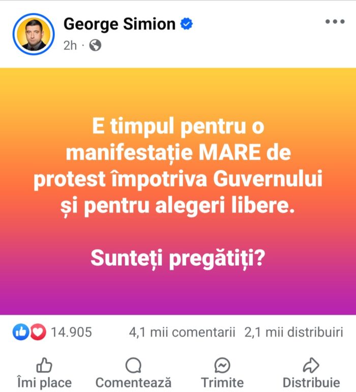 „E timpul pentru o manifestație MARE de protest împotriva Guvernului și pentru alegeri libere.